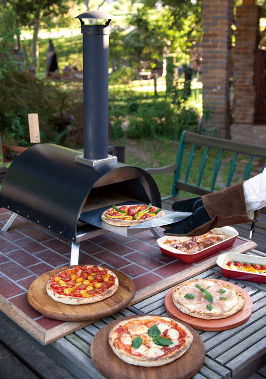 薪窯の性能をギュッとコンパクトにした可愛らしいピザオーブンです。どこでも持ち運べて様々な場所でピザパーティーが楽しめます。