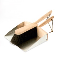 贅沢に馬毛を使ったブラシ&ステンレスとブナ材のコントラストが美しいちりとりは、そのまま置いただけで絵になるセット。木屑や灰などが落ちやすい炉台の掃除に最適です。マグネット脱着式。革ひもで壁掛け収納もできます。