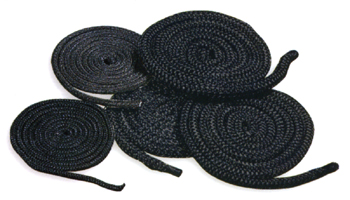 ストーブ開口部のガスケットです。ドアやクッキンググリドル、ダンパーや灰受け皿扉部は、このグラスファイバーロープで気密性を高めています。耐用年数を過ぎたら交換します。使用箇所により太さが異なります。
